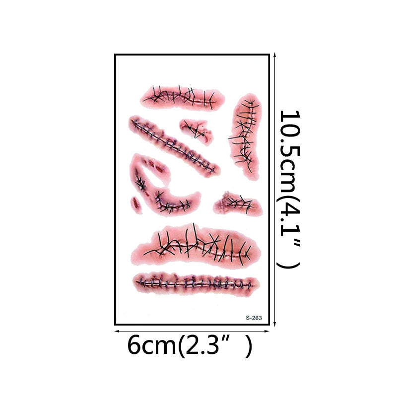 6pcs Halloween Bloody Wound Tattoo Stickers Trick Scary Waterproof Temporary Tattoo DIY Fake Tattoo Halloween Party Decoration