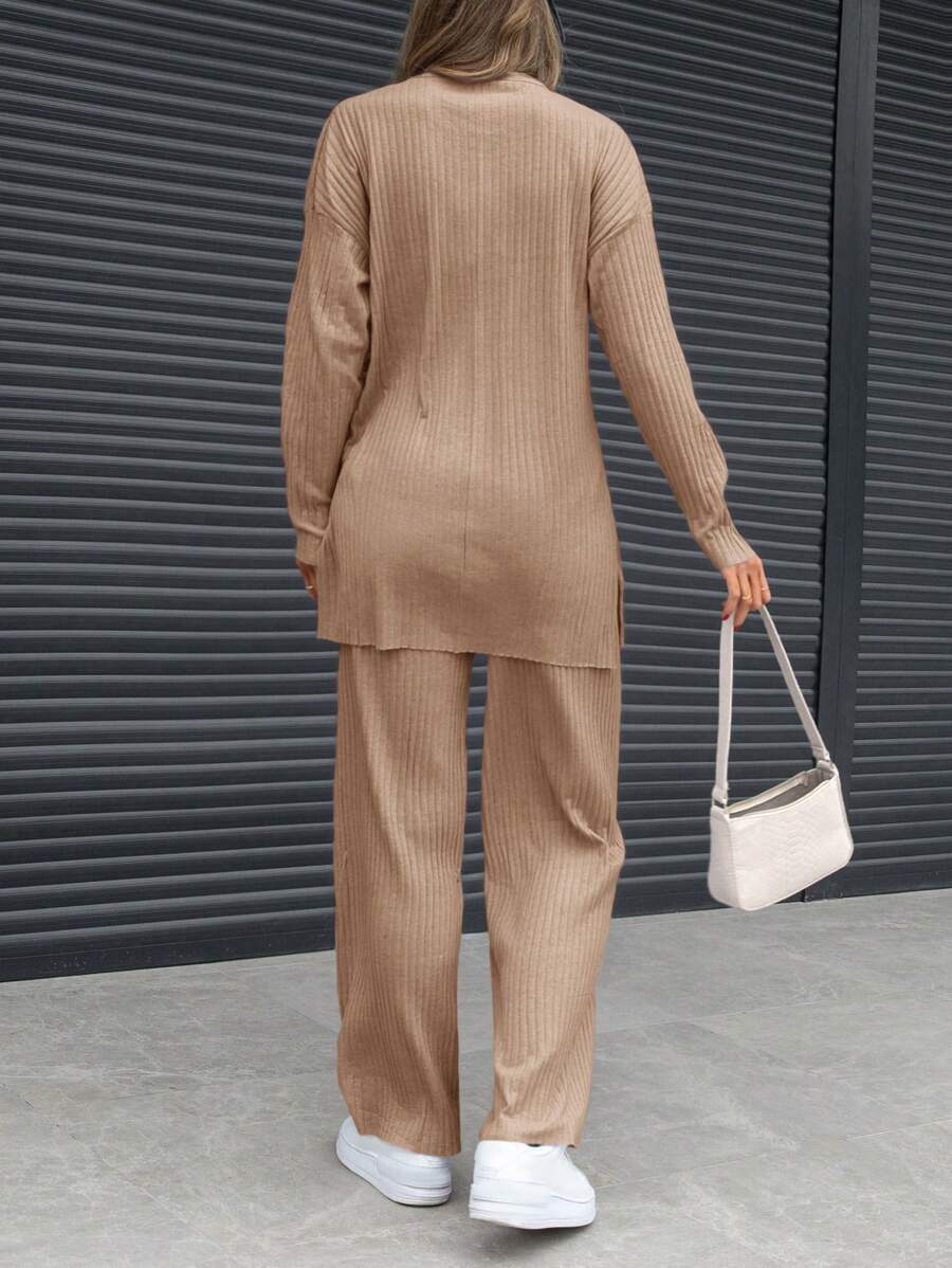 Damen 2 Stücke Freizeitset - Rundhals-Oberteil mit Trompetenärmeln und Schlitz-Saum sowie Hose, Herbst